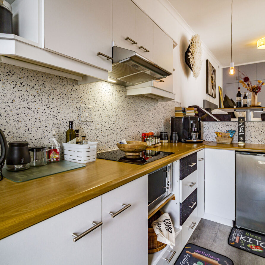 Das Maisonette Häuschen ist ein Selbstversorger Appartement mit einer geräumigen und einer sehr grosszügig ausgestatteten Küche und eigener Waschmaschine. Das Maisonette Häuschen liegt hinter dem Haupthaus und bietet Unabhängigkeit und noch mehr Privatsphäre.